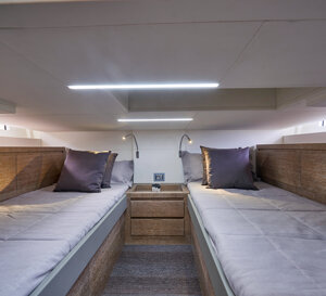 vel max 36 nodi, crociera 28 nodi consumo 80 litri/ora, a 23 nodi 60 litri/ora per entrambi i motori