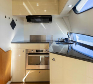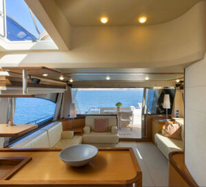 Il Ferretti 681 segna un'evoluzione significativa rispetto al suo predecessore, il 680, con un design fresco e moderno caratterizzato da teak a poro aperto e contorni raffinati per un utilizzo ottimale dello spazio. Il suo esterno elegante vanta finestrini sopraelevati estesi e una nuova panca con spoiler per il relax in riva al mare. All'interno, il layout dello yacht enfatizza il lusso e il comfort, con cabine ospiti che includono versatili letti a L e una cabina VIP con eleganti finiture in teak e marmo. La master suite offre una vista panoramica sul mare attraverso le sue caratteristiche finestre e comprende uno spazioso divano semicircolare. Sopra, il flybridge è dotato di un divano circolare, un tavolo regolabile e ampi prendisole, che esaltano lo status del Ferretti 681 come apice dell'eccellenza nautica.